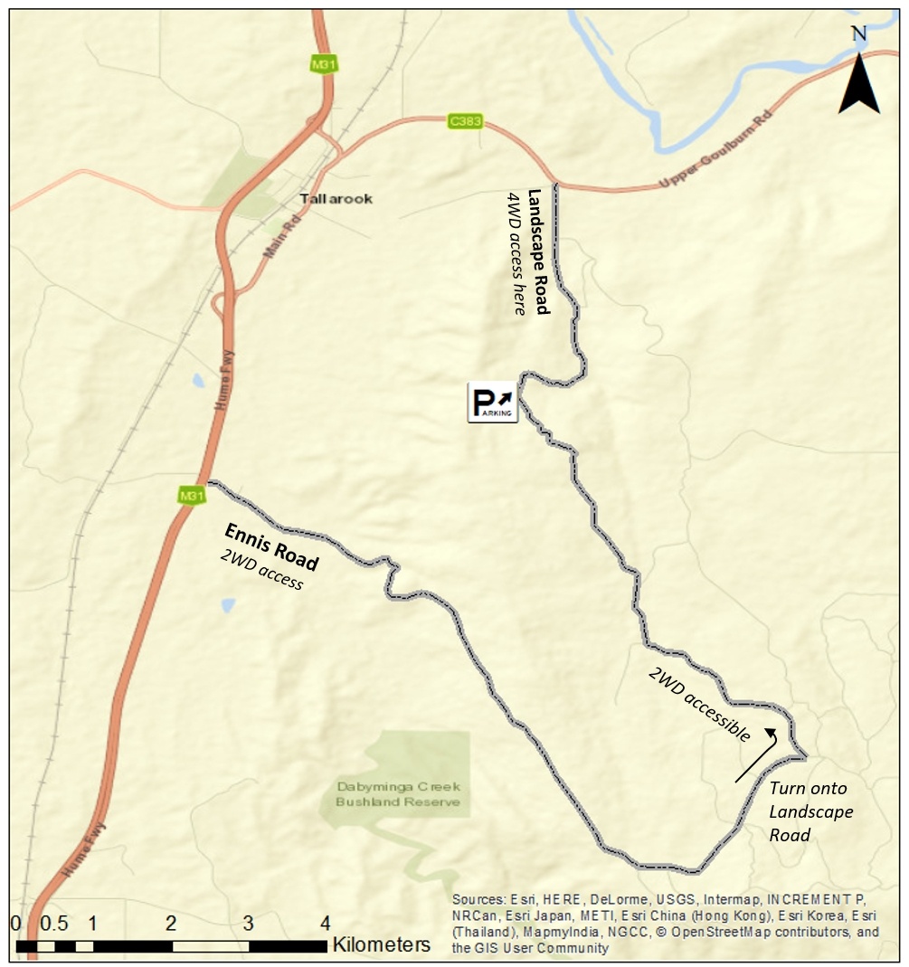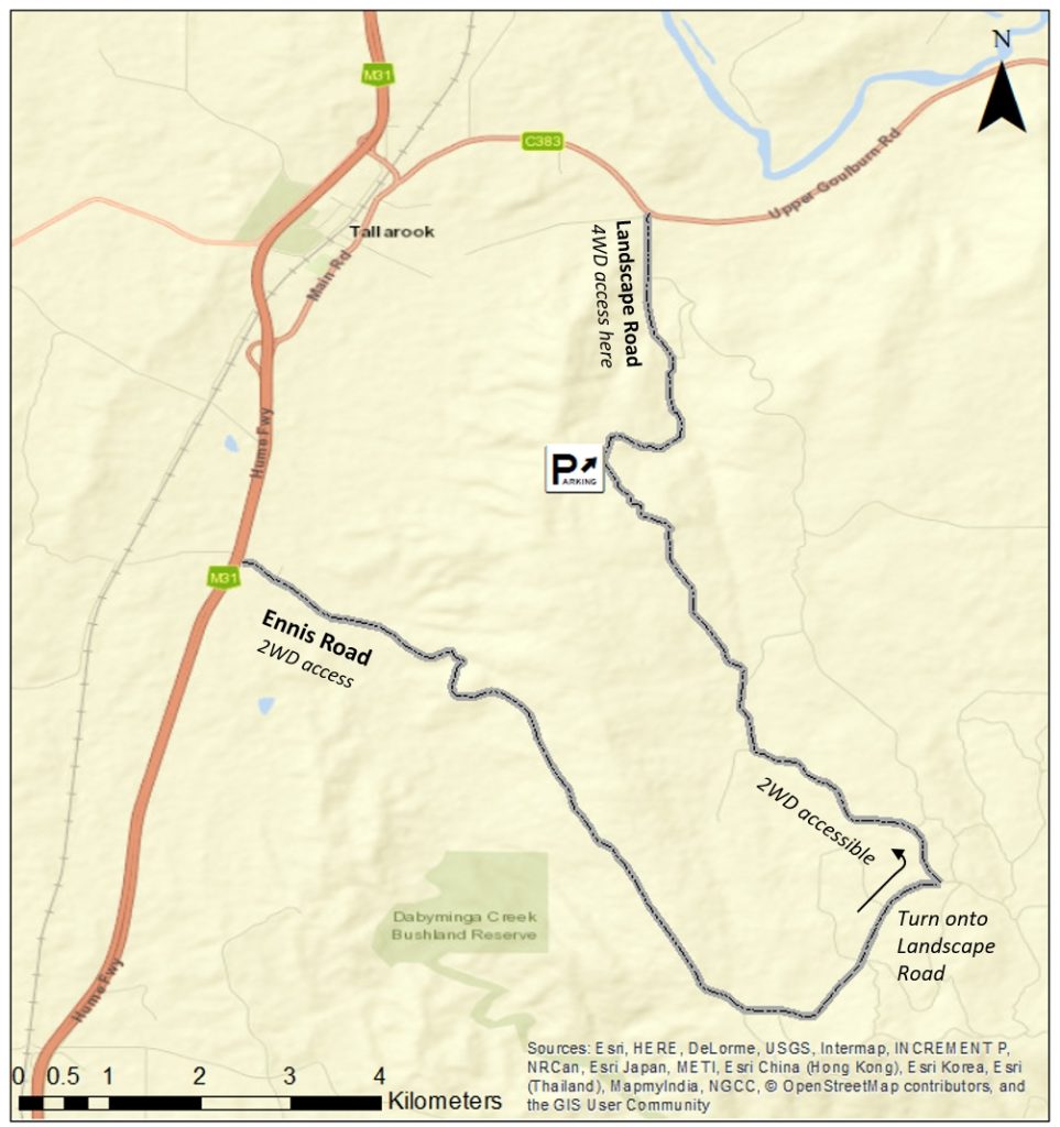 Car parking just beside Landscape Rd, Tallarook VIC. People should meet at a car park which is located along Ennis Rd end then down (north) along Landscape Rd and park together at a corner without a name but plenty of space. 4wd owners can come up Landscape Rd – it is slightly shorter distance.